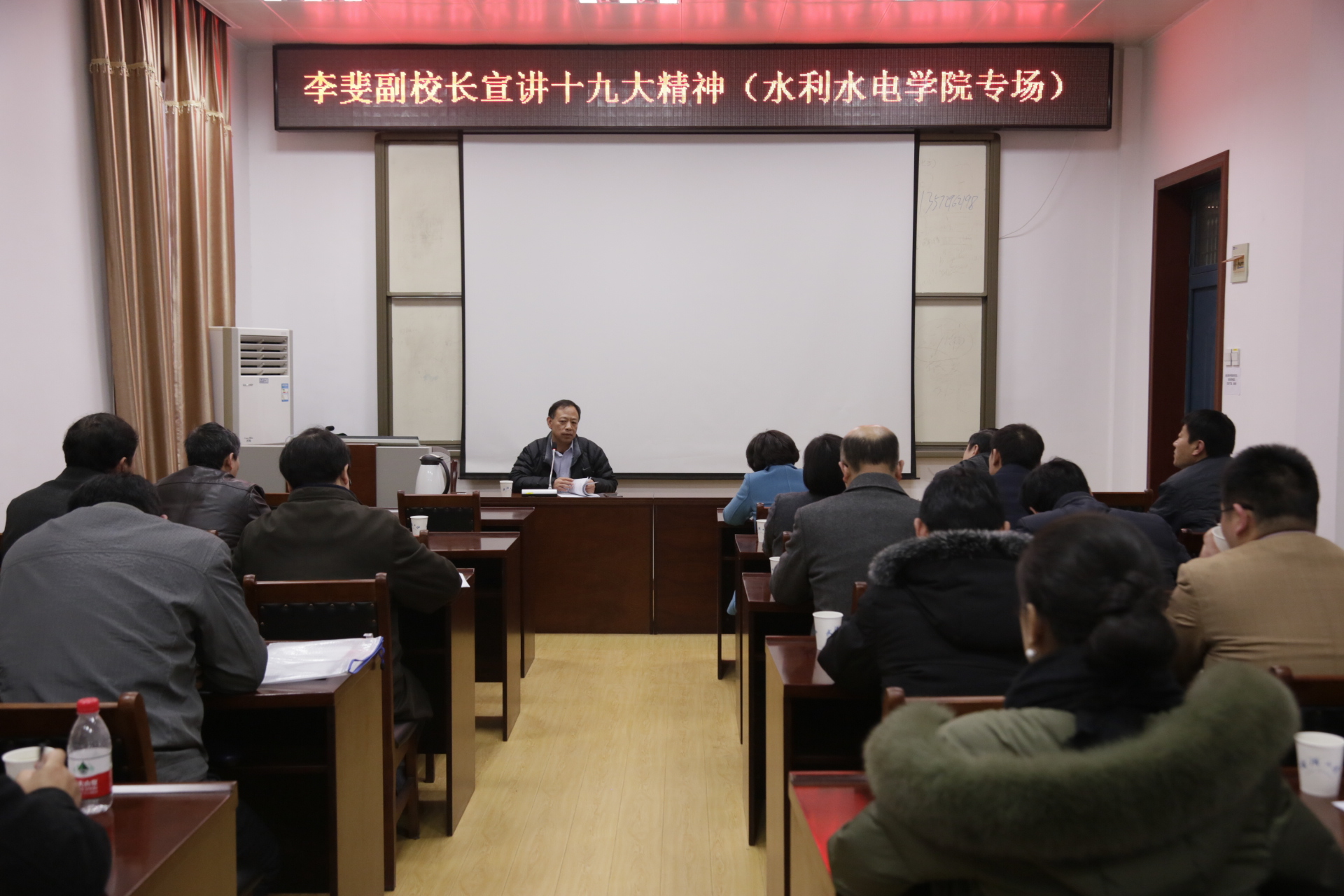 12月28日下午,副校长李斐教授做客威尼斯wnsr888,为学院党委中心组带来一堂生动的十九大精神宣讲会。学院及国家重点实验室全体领导班子成员,各教职工党支部书记,各系主任、副主任等聆听了宣讲会。活动由学院党委书记程连珍主持。