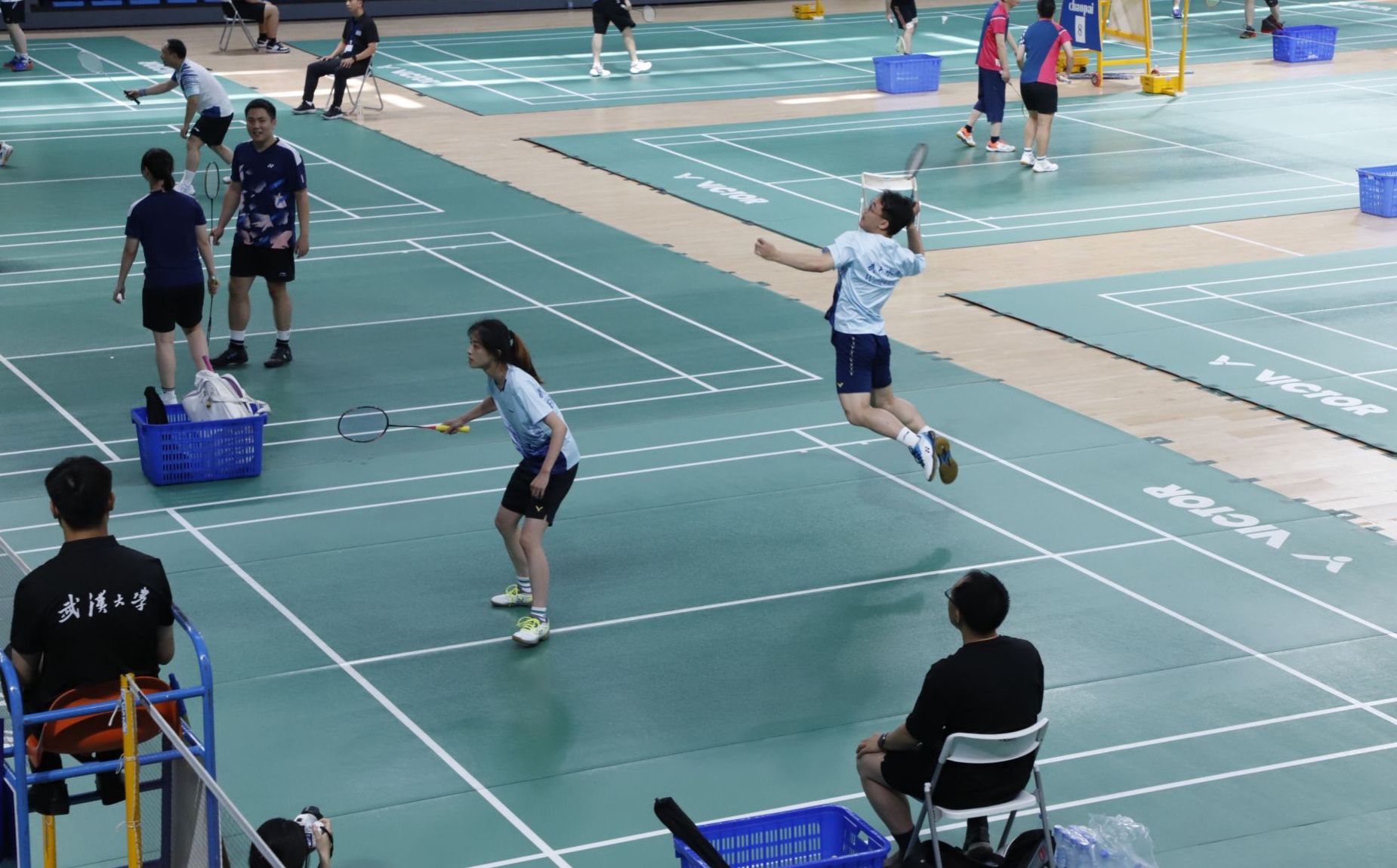 6月15日,武汉大学卓尔体育馆内热闹非凡,一场别开生面的师生校友羽毛球比赛正如火如荼地进行。学院30名师生、校友组成两支队伍参赛,院党委书记、全国重点实验室主任李典庆,副书记左志香分别担任两支队伍的领队。此次赛事23名教师参加,还邀请了学生和校友7人。他们的年龄从弱冠到花甲,分成了三组不同年龄层次的双人组合,苏凯、李丹担任教练,为比赛选手提供战术指导。
