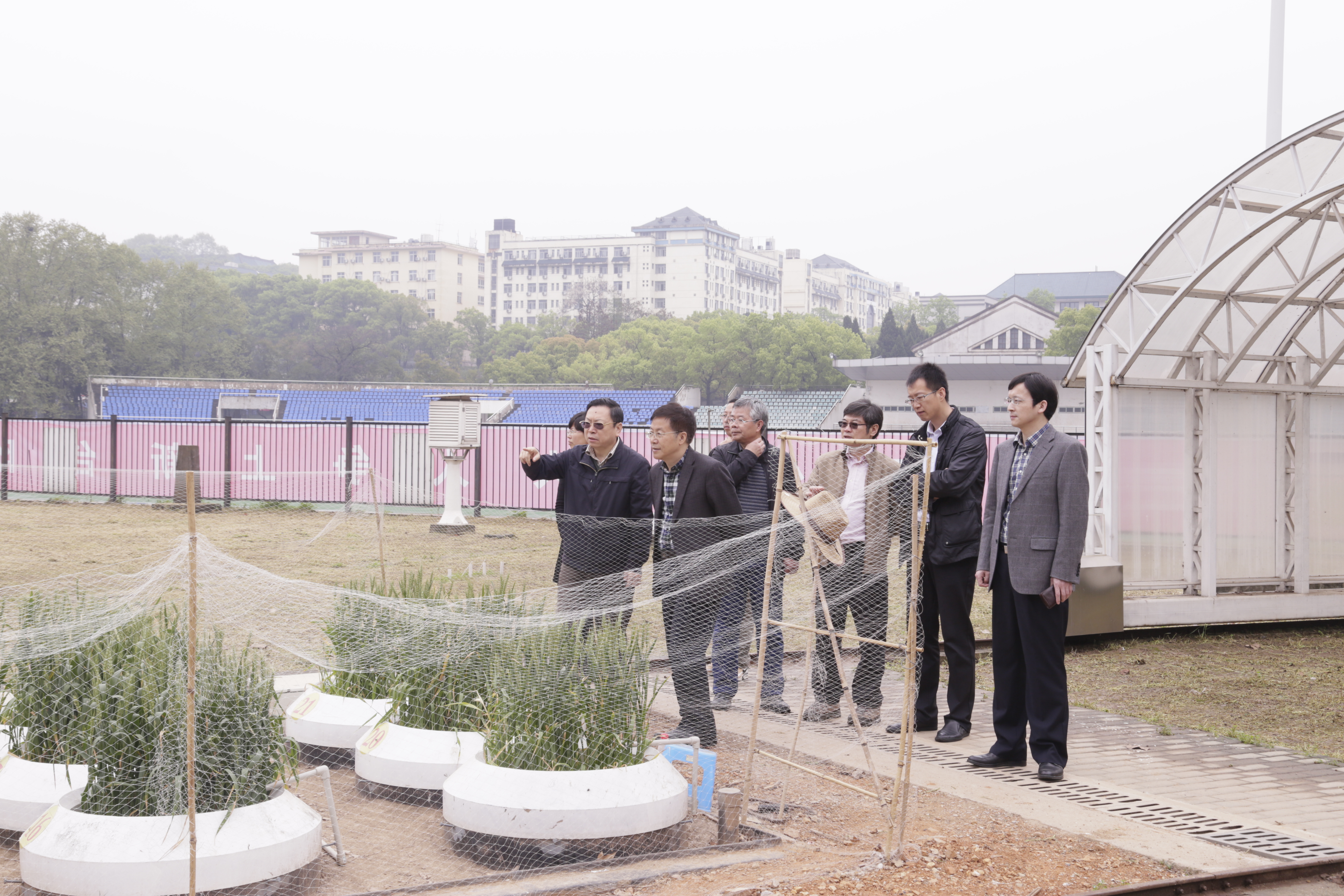 刘丛强院士实地考察了学院灌溉排水与水环境综合实验场。黄介生院长向刘院士介绍了实验场的基本情况,灌溉排水与水环境综合实验场始建于1996年,现占地面积约7000m2,建有灌溉排水试验区、设施农业实验区、地下水与水环境实验区、河渠输水实验区、径流模拟实验区、自动气象站、节水设备测试区、地下水库及中心泵站等。近年来实验场承担了学院的多项溶质运移、再生水灌溉、节水灌溉、作物耗水量、植物生长过程监测、土壤水分运动参数测定、灌溉新技术等方面的基础或应用实验研究任务。