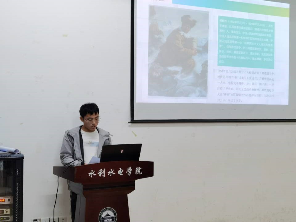 活动最后,本次学习活动主持人张奥南同学对此次学习活动进行了总结:通过这次团会,我们对抗美援朝的历史、背景、意义等有了更深刻的理解和感悟。并积极听取学习了师长的想法。战争英雄教会我们舍己为人,忠诚爱国,无私奉献的可贵品质;战役的胜利让我们更有感于国家的强大,民族凝聚力之旺盛。回望那段历史,我们深感自己诞生于这般幸福的时代,作为当代青年,我们应心存感激。抗美援朝精神,是祖国和人民利益高于一切、为了祖国和民族的尊严而奋不顾身的爱国主义精神,是英勇顽强、舍生忘死的革命英雄主义精神,是不畏艰难困苦、始终保持高昂士气的革命乐观主义精神,是为人类和平与正义事业而奋斗的国际主义精神。作为当代青年,我们应主动学习这段波澜壮阔的历史,不忘初心,牢记使命,将个人命运与国家、人民紧密相连,怀家国之热枕,为实现中华民族伟大复兴贡献自己的一份力量,为推进人类命运共同体贡献自己的一份智慧。